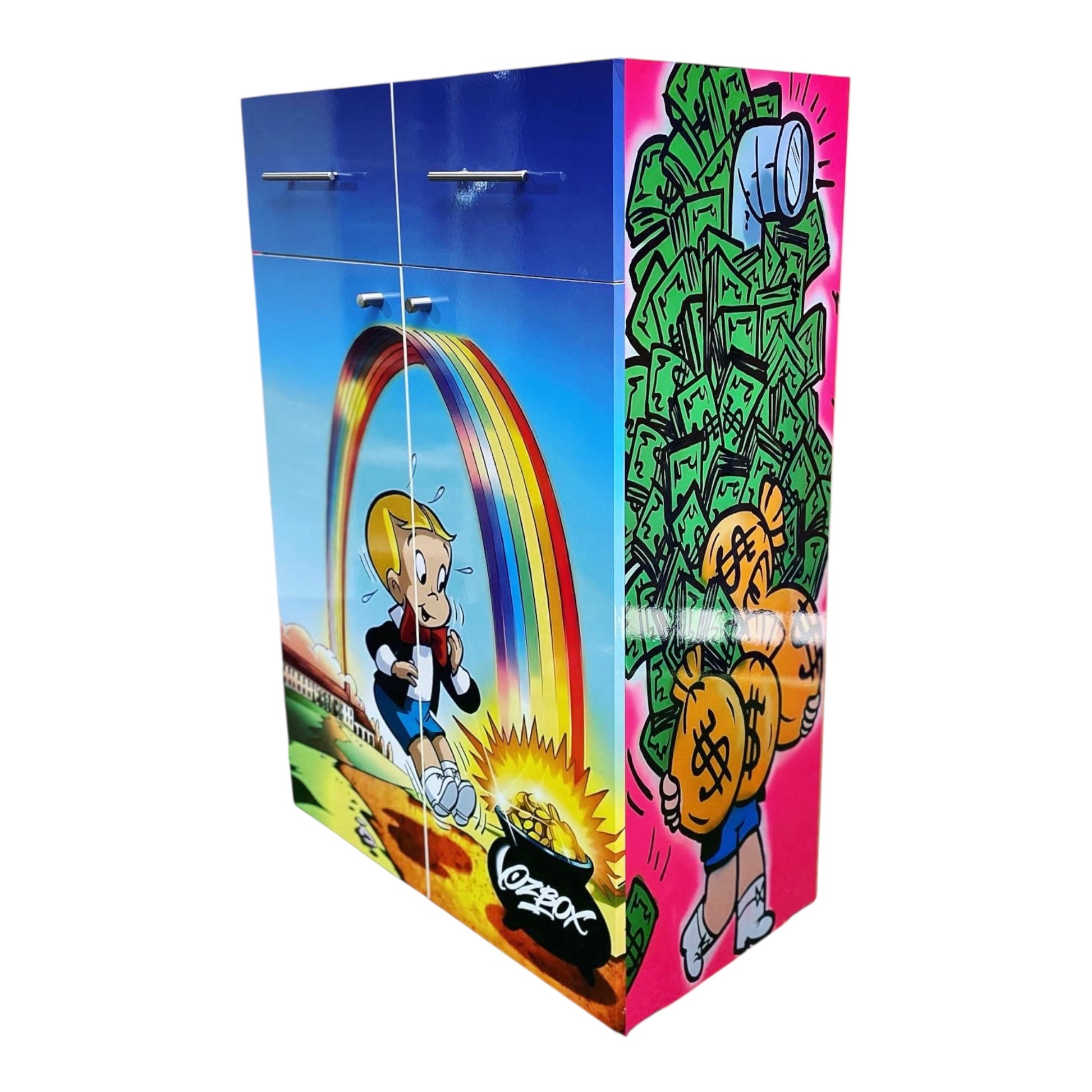 La fabricación de este mueble tiene un plazo de entrega de 4 a 5 semanas aproximadamente. El diseño gráfico del mueble será personalizado a tu gusto. Una vez realizada la compra te contactaremos para trabajar en tu proyecto.